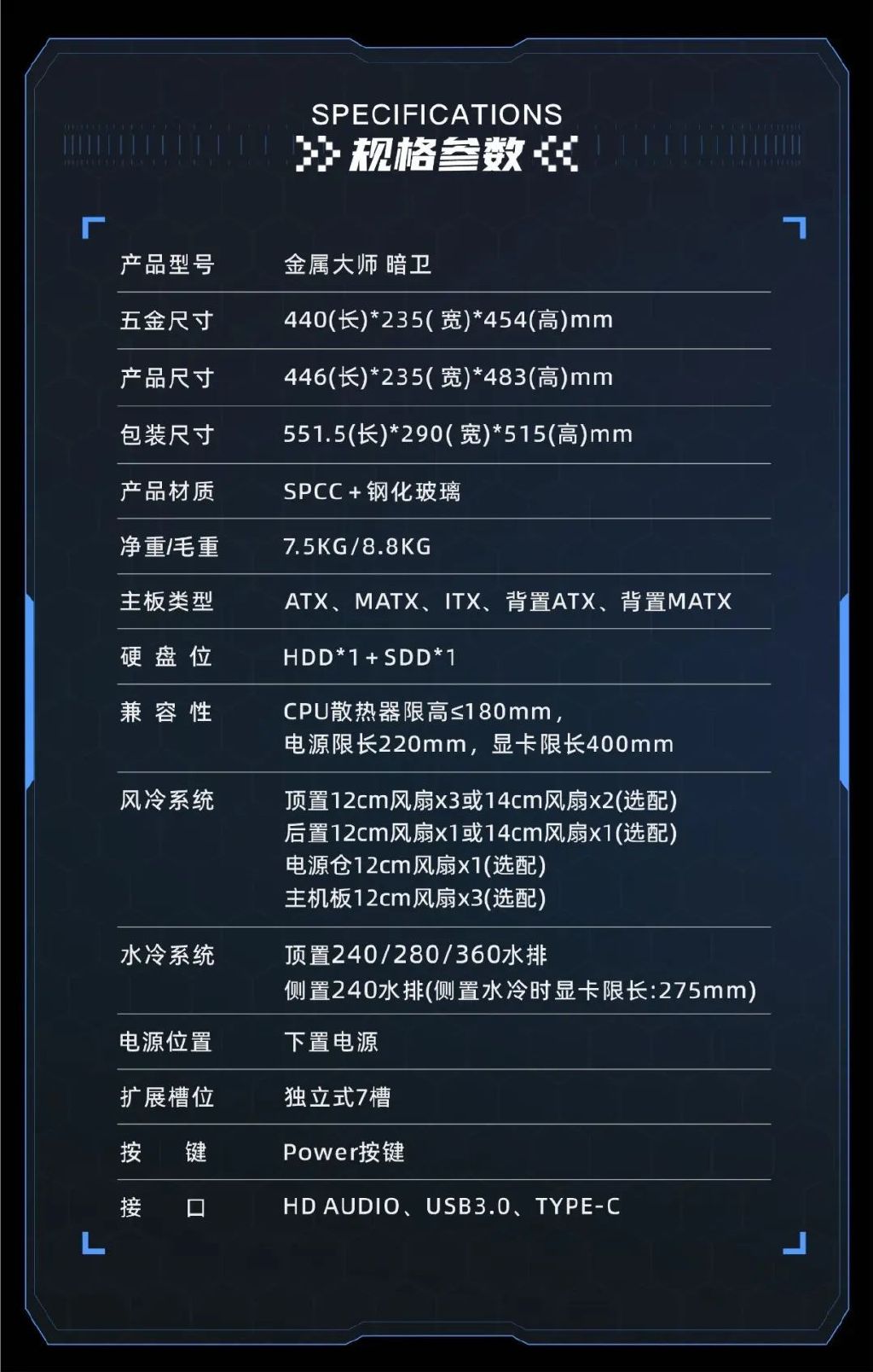 IT之家 2 月 18 日消息,影驰官方今晚推出了全新「金属大师暗卫」机箱,明日正式开启预售,首发价249 元。