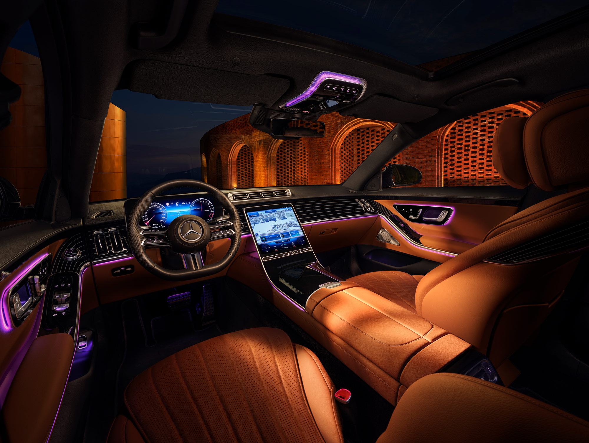 奔驰 S 级具备 31 扬声器 Burmester® 4D 音响搭配座椅振荡器,支持杜比全景声与噪声补偿;拥有 263 颗 LED 光源构建“浮岛”立体光效,可联动驾驶辅助系统提供视觉警示。