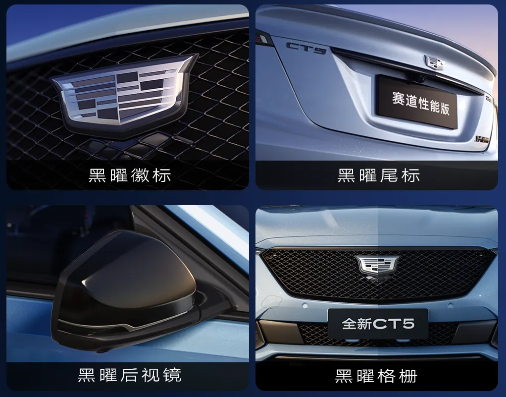 全新 CT5 提供城市运动版和赛道性能版,提供巅峰赛道选装包。新车提供 Typhoon 台风绿和 Drift 逐风蓝两款 V 系列同款车色,并推出专属黑标性能套件,包含黑曜徽标、黑曜尾标、黑曜后视镜、黑曜格栅等。