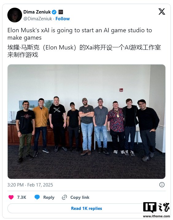 马斯克在直播中表示:“我们将在 xAI 成立一个 AI 游戏工作室。如果你有兴趣加入我们,共同构建 AI 游戏,请加入 xAI。”然而,目前关于该工作室的性质、目标、xAI 未来的发展方向以及可能开发的游戏类型等细节尚未向公众透露。据 xAI 一名员工在社交媒体上发布的消息,目前该团队共有九名成员,包括马斯克本人。