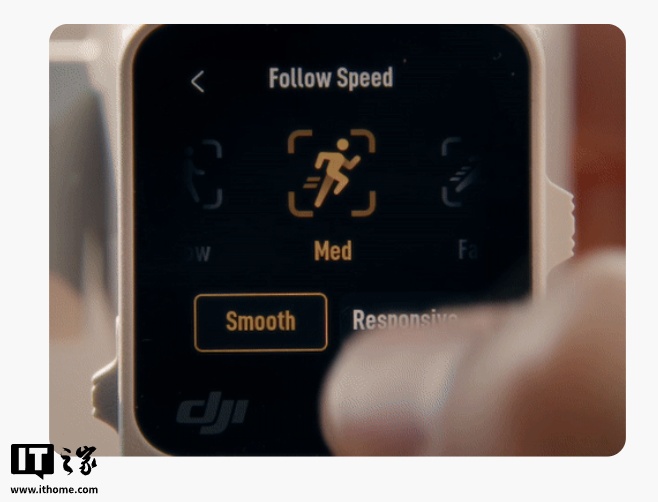 RS 智能追踪模块采用磁吸快拆底座,1 秒吸附在俯仰轴上。单击云台扳机,就能 1 秒确认主体并开启 / 停止智能追踪,让摄影师迅速跟上主角。被拍摄主体对着 RS 智能追踪模块张开手掌,也能 1 秒激活。新增紧密跟随模式,同时保留 DJI 经典的平滑跟随模式。