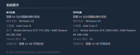 配置需求方面,Steam 显示本作最低需要 GTX 770、R9 280 显卡,推荐使用 GTX 1060 6GB 或 AMD Radeon RX 480 4GB 级显卡。