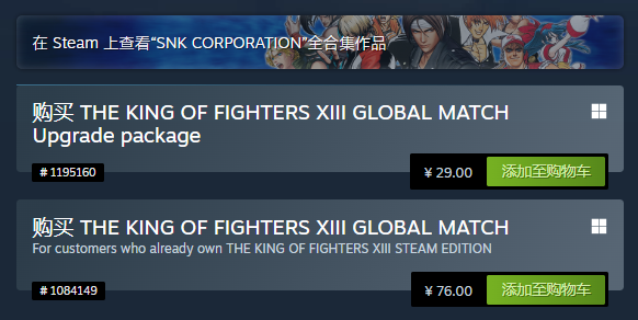 《拳皇 13 GM》Steam 国区定价 76 元,但如果是已有原版《拳皇 13》的玩家就可以只花 29 元购买升级包(IT之家注:SNK 很显然是把小字错标到完整版下面)。