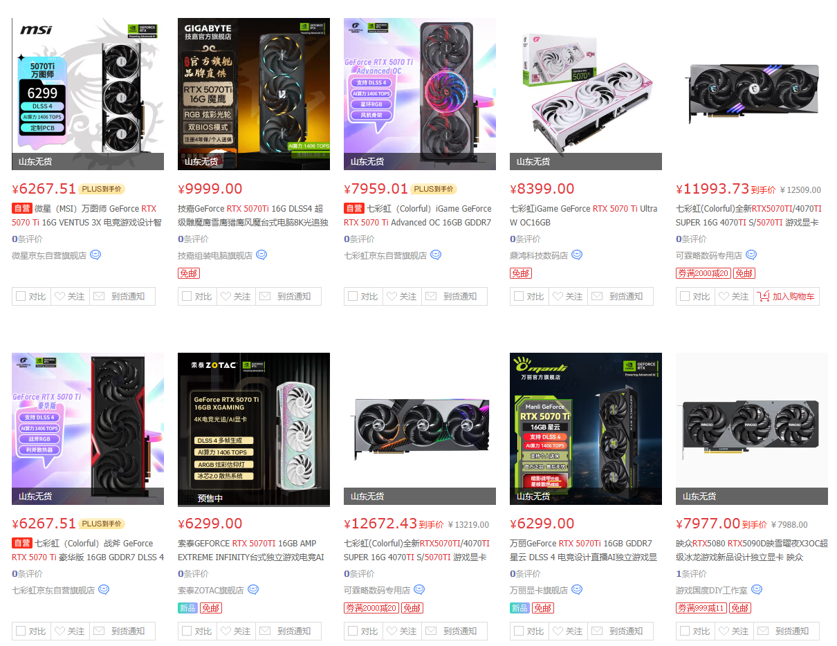 IT之家 2 月 20 日消息,今晚 22:00,各大厂商的 RTX 5070 Ti(没有公版)宣布上市,但相比 6299 元的国行建议零售价普遍溢价或缺货。