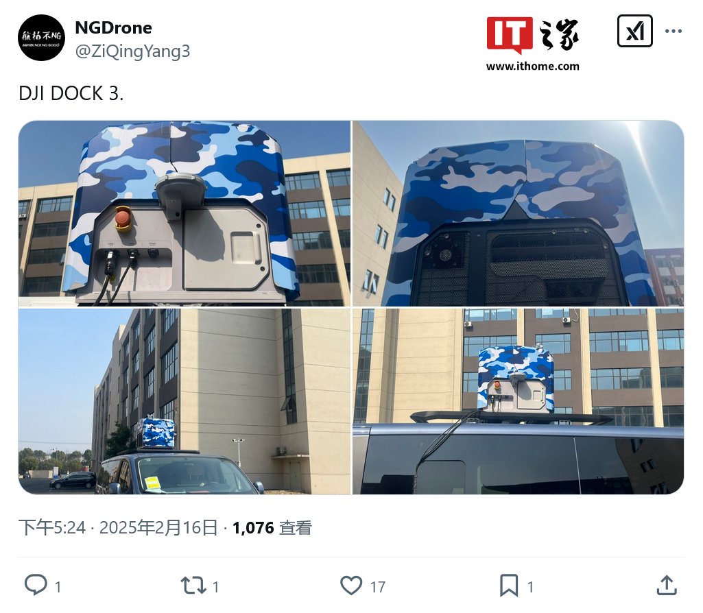 IT之家 2 月 21 日消息,消息源 NGDrone 于 2 月 16 日在 X 平台发布推文,分享了大疆机场 3(DJI Dock 3)系统最新照片,表明该公司正研究新版自动化 drone-in-a-box 解决方案。