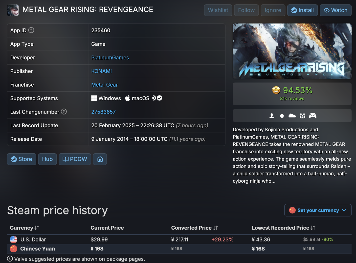 IT之家 2 月 21 日消息,科乐美旗下《合金装备崛起:复仇(METAL GEAR RISING:REVENGEANCE)》现已解锁 Steam 国区,本作最初于 2013 年 2 月登陆 PS3、Xbox 360 平台,2014 年 1 月登陆了 PC(Steam)平台,目前在 Steam 国区定价为 168 元。