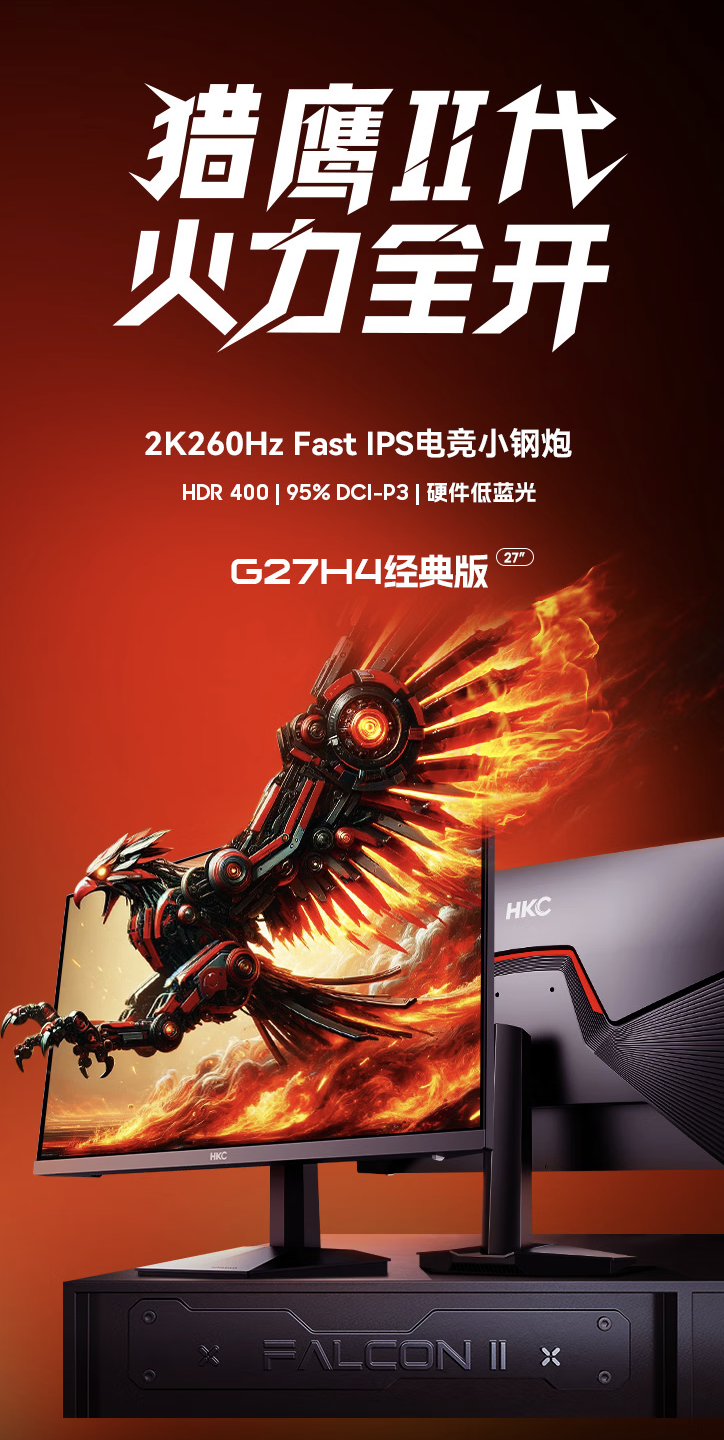 IT之家 2 月 21 日消息,HKC 现已在京东上架一款型号为“G27H4 经典版”的 27 英寸显示器,该机主打“2K 260Hz(超频)”,定价为 1099 元,将于 3 月 1 日首销。
