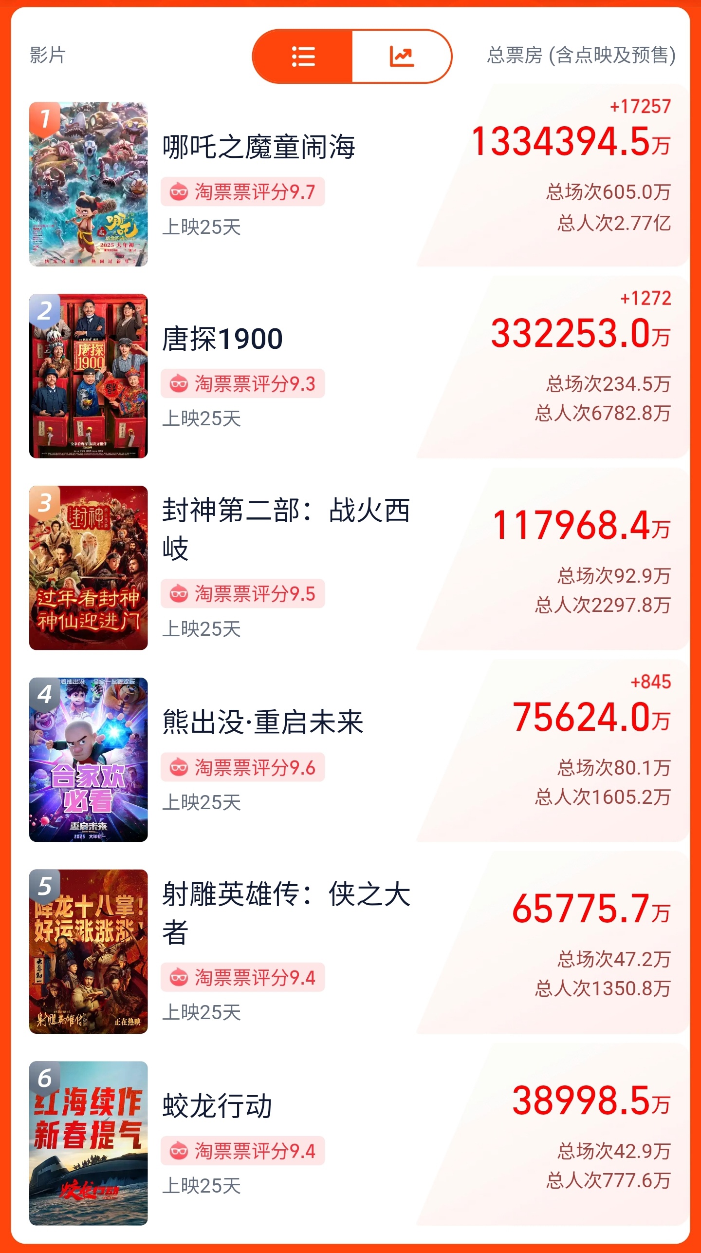 IT之家附 2025 春节档实时票房榜: