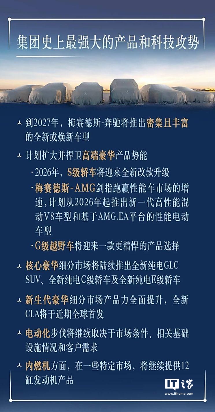 g 级假想图回顾奔驰此前的新产品计划,2026 年将是其产品大年。奔驰 S 级将迎来大改款升级,同时,梅赛德斯-AMG 独立研发的高性能纯电动 SUV 以及国产 GLE 长轴距版也将推出。此外,全新 GLC 纯电、C 级纯电以及 E 级纯电车型也在规划之中。而作为最先发布的全新奔驰 CLA,还将针对中国市场推出长轴距版。