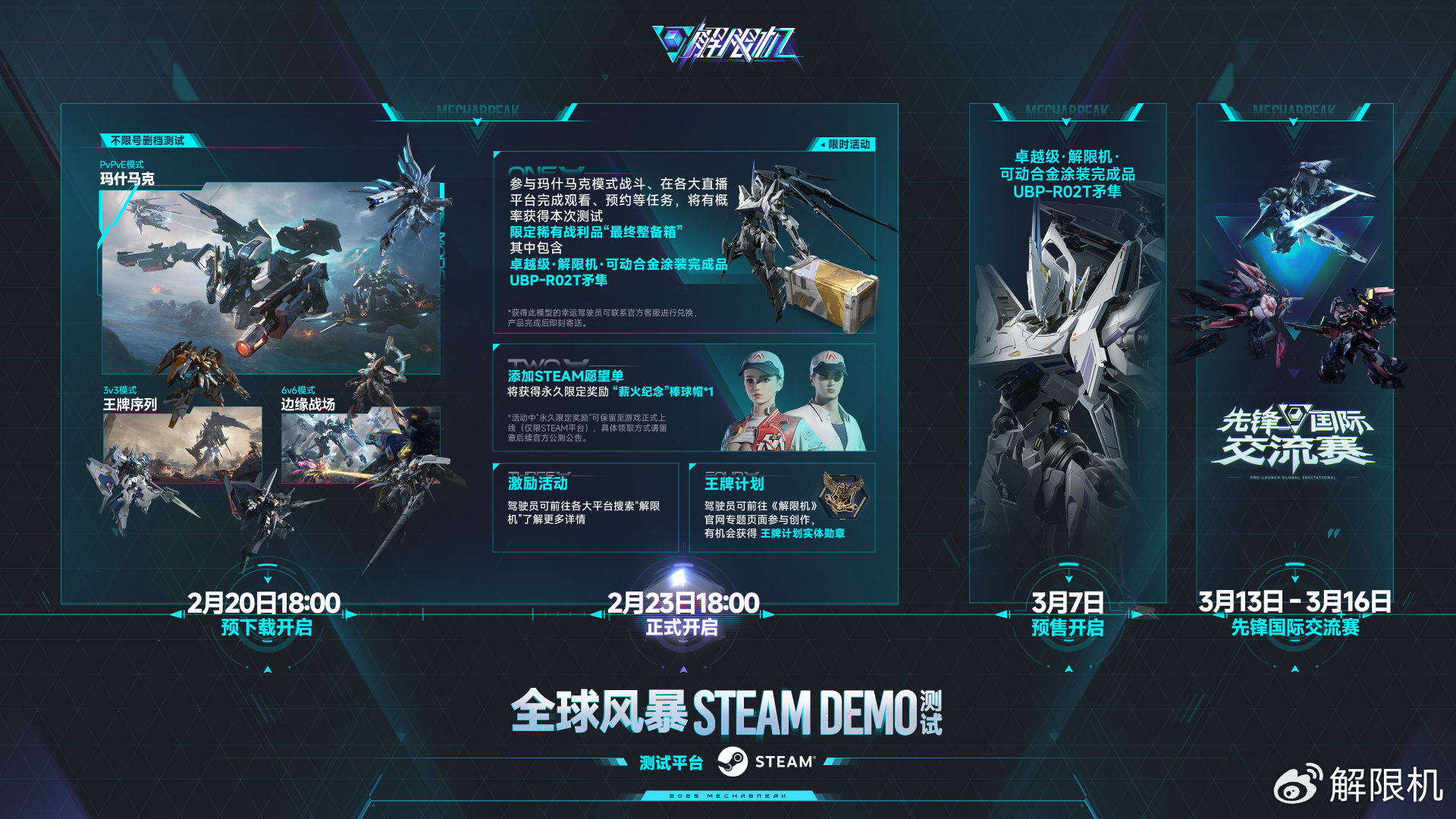 IT之家 2 月 23 日消息,西山居旗下科幻机甲游戏《解限机》全球风暴 SteamDemo 测试于今日 18:00 正式开启,游戏现已开放预下载。
