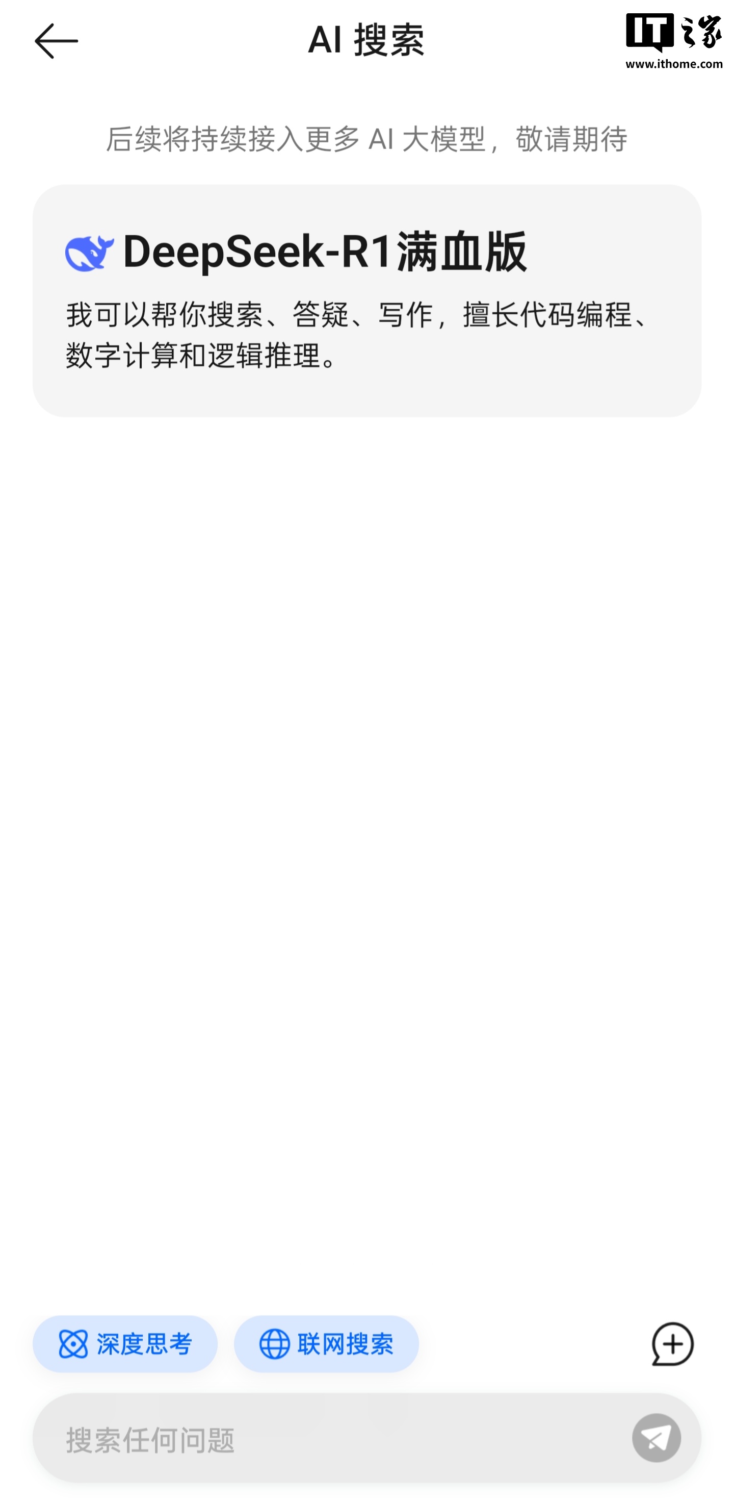 IT之家注意到,OPPO 浏览器已接入 DeepSeek-R1 模型满血版,提供 AI 搜索、联网搜索、深度思考等功能。用户还可将其添加至浏览器“视界”板块的首页。