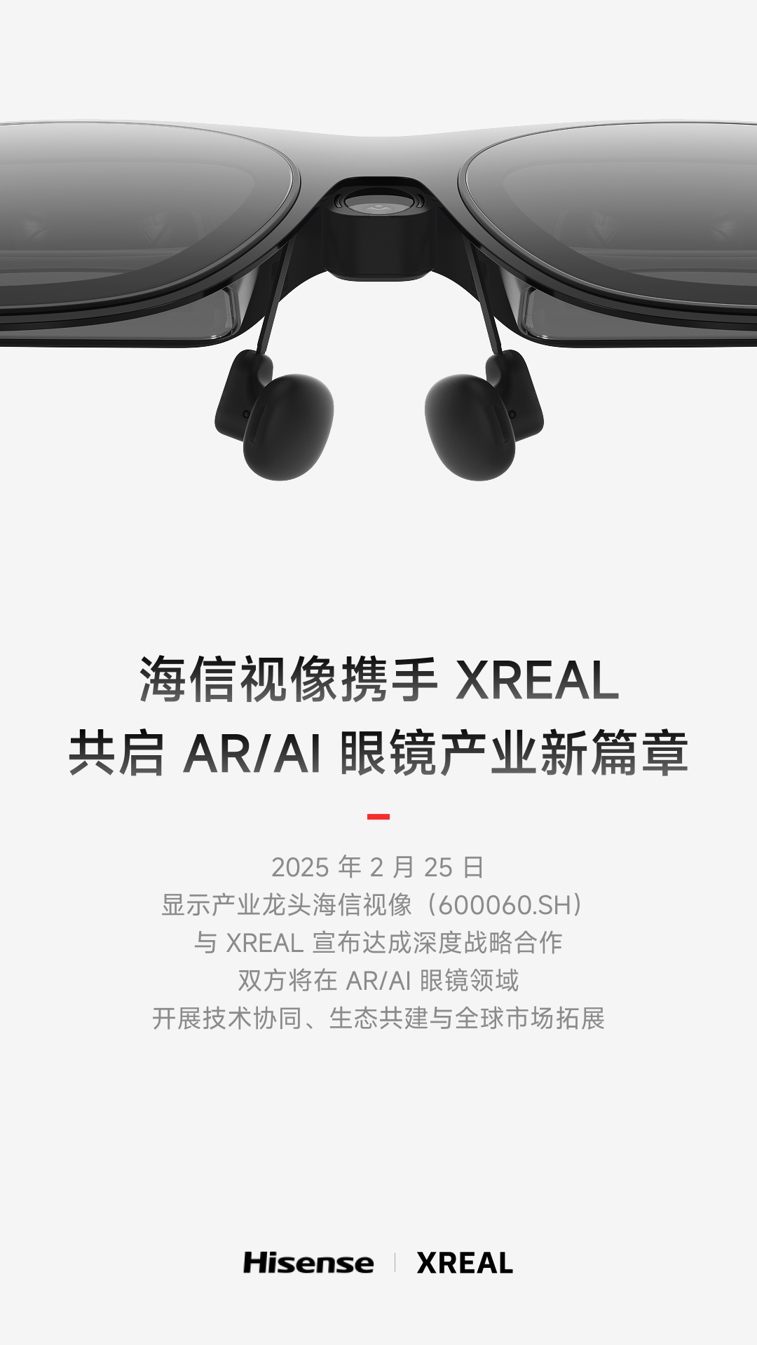 IT之家 2 月 25 日消息,海信视像科技与 AR 企业 XREAL 今日宣布达成深度战略合作,双方将在 AR / AI 眼镜领域开展技术协同、生态共建与全球市场拓展。