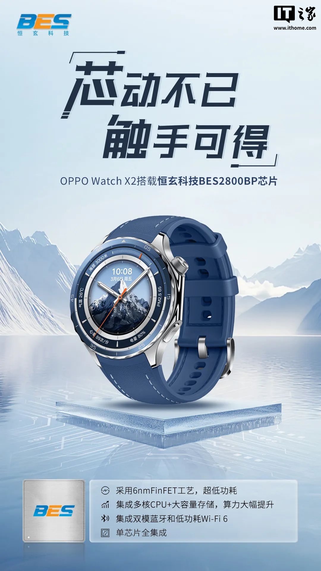 恒玄科技(上海)股份有限公司今日发文:OPPO Watch X2 智能手表搭载恒玄科技 BES2800BP 芯片。