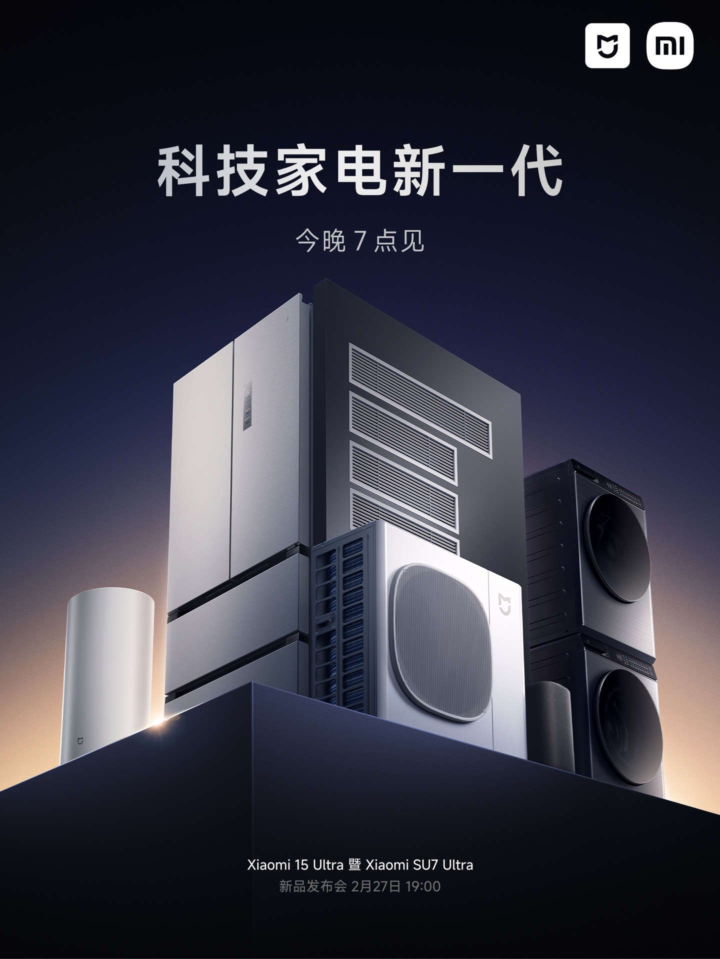 IT之家 2 月 27 日消息,小米智能生态官微陆续宣布了将在今晚小米 15 Ultra 暨小米 SU7 Ultra 发布会上登场的一系列产品,涵盖智能音箱、中央空调等多品类产品。