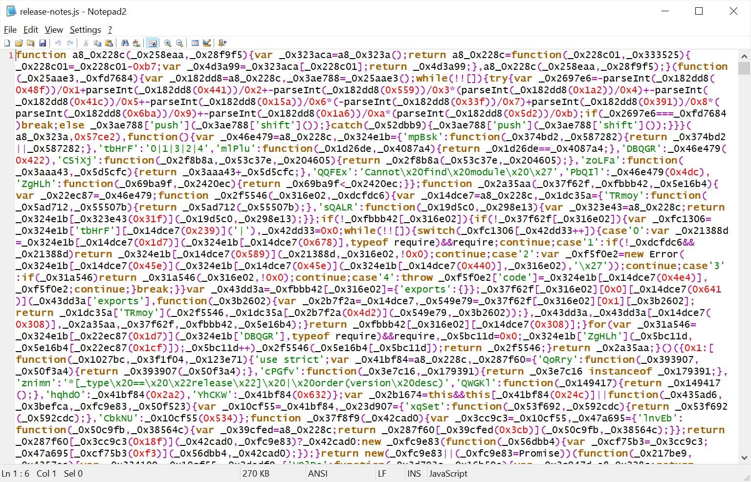 研究人员表示,主题文件应该是静态的 JSON 文件,不应该执行任何代码,而这两款扩展主题中的“release-notes.js”文件包含高度混淆的 JavaScript 代码,这在开源软件中通常是一个危险信号。