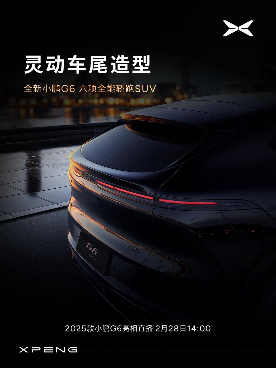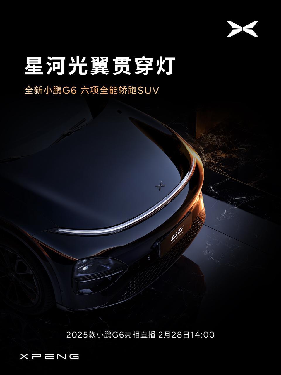 IT之家 2 月 27 日消息,2025 款全新小鹏 G6 汽车将在 2 月 28 日 14 时的直播活动中首次亮相,并宣称新车将更强、更快、更焕新。