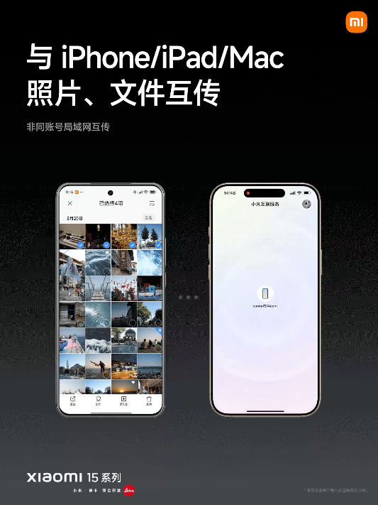 IT之家 2 月 27 日消息,小米 15 Ultra 全面支持苹果生态,新增不同账号局域网互传功能,可以与 iPhone / iPad / Mac 照片、文件互传,动态照片也可以。