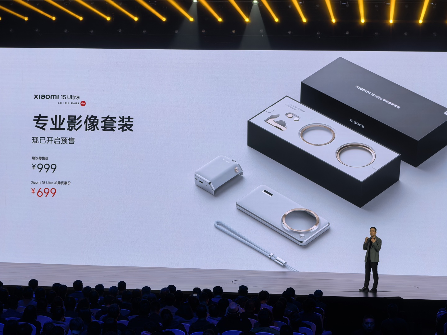 小米 15 Ultra 依然配有专业影像套装,新配色鎏金灰如下图所示。