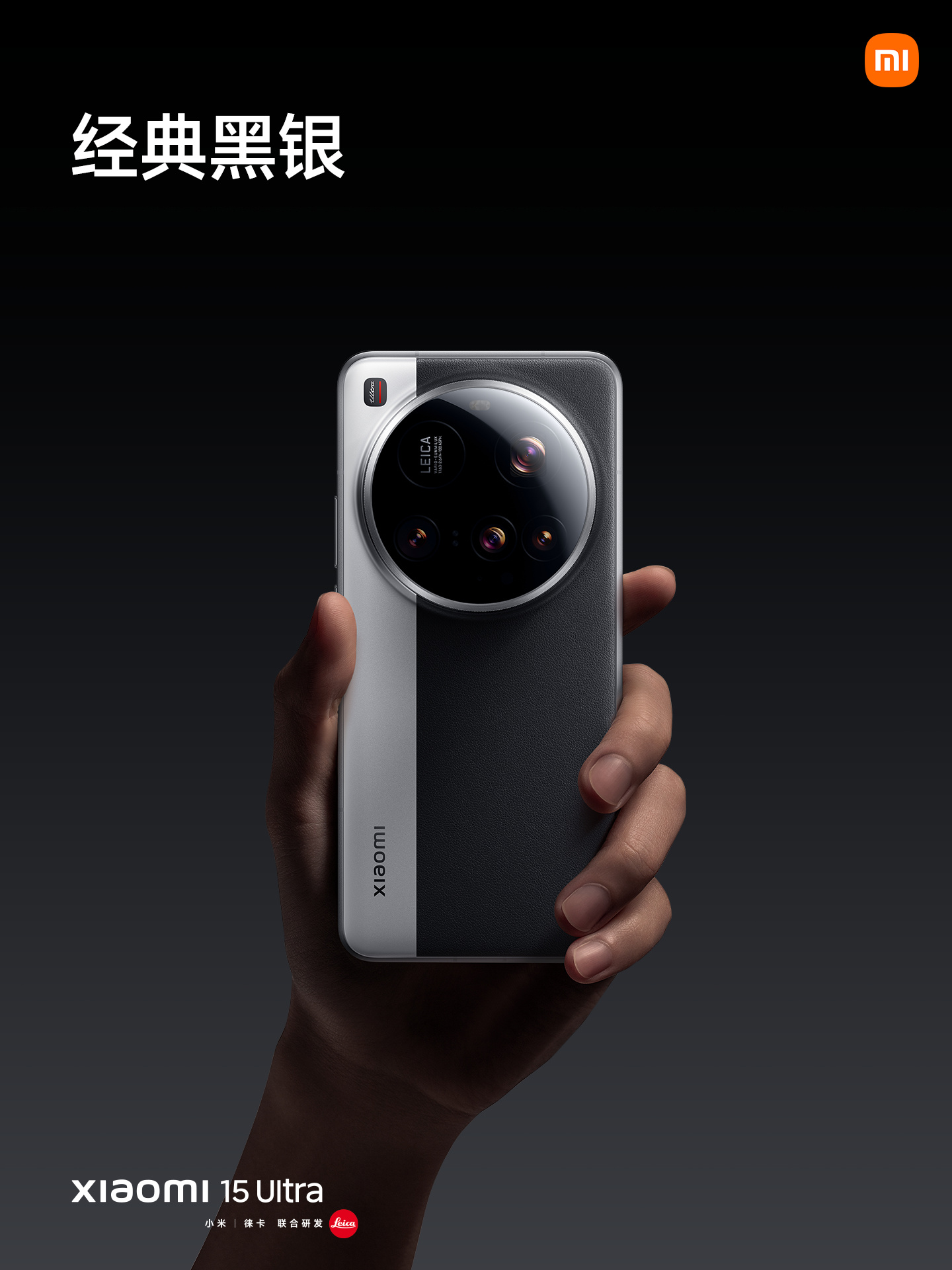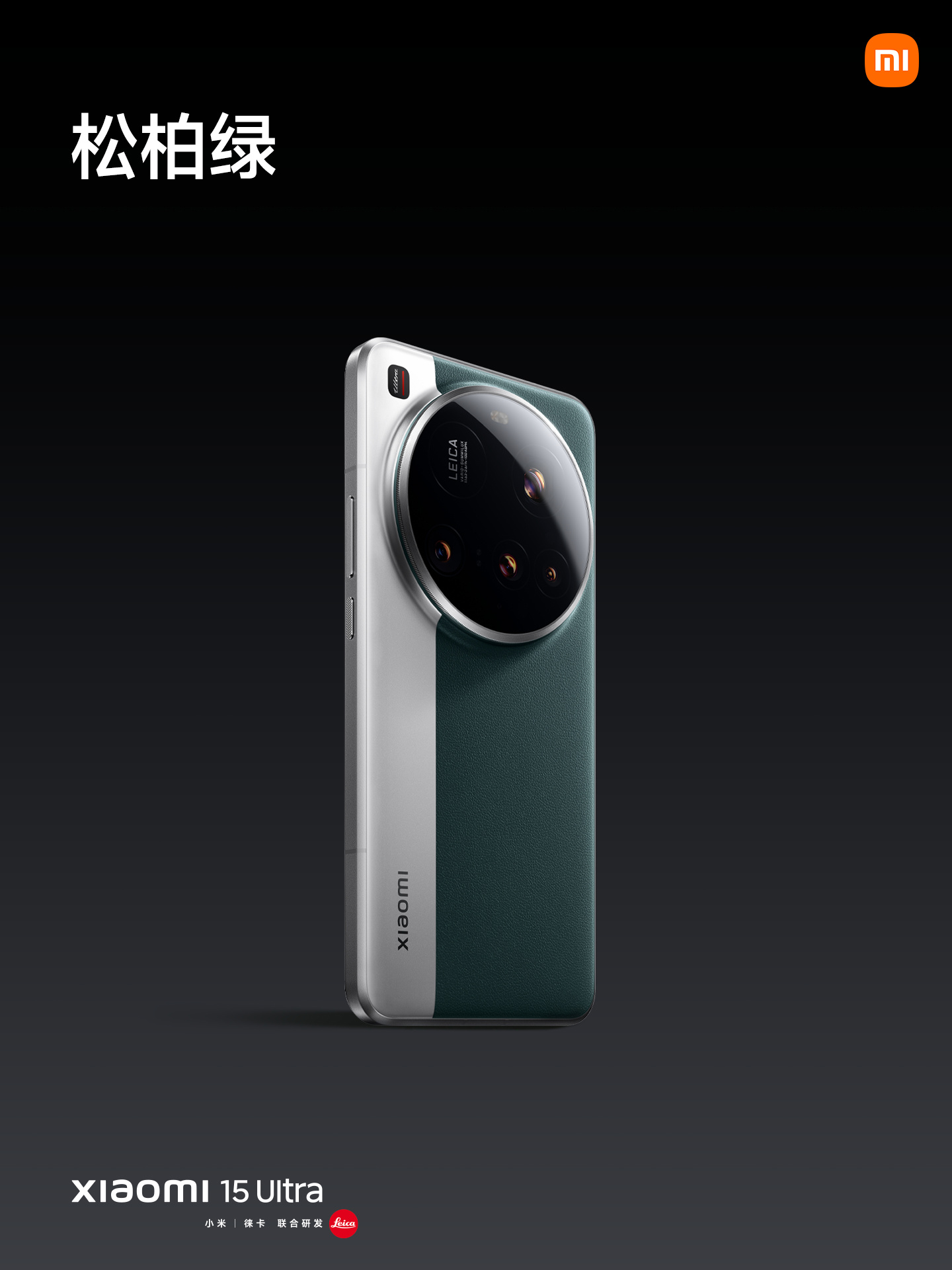 小米 15 Ultra 延续了系列的大圆盘后摄设计,可选四款配色“经典黑银、松柏绿、白色、黑色”,号称是“小米迄今手感最好的 Ultra”,支持 IP68 防尘防水,配有定制 Ultra 铭牌。