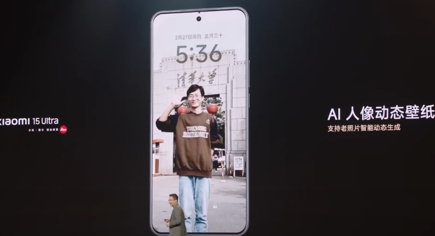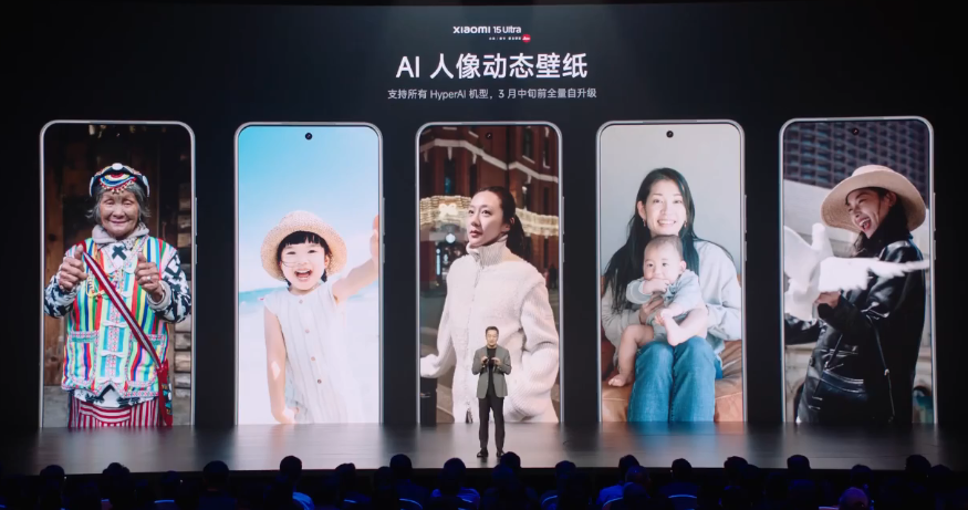 小米 15 Ultra 还搭载 AI 人像动态壁纸功能,可以让老照片动起来。这个功能后续将下放到所有 HyperAI 机型,3 月中旬前全量自升级。