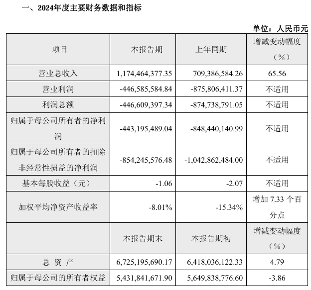 IT之家 2 月 27 日消息,寒武纪今日发布 2024 年度业绩快报公告,报告期内,公司实现营业收入 11.74 亿元,同比增长 65.56%。公司归属于母公司所有者的净利润为-4.43 亿元,较上年同期亏损收窄 47.76%,主要系报告期内营业收入较上年同期大幅增长及信用减值损失转回所致。