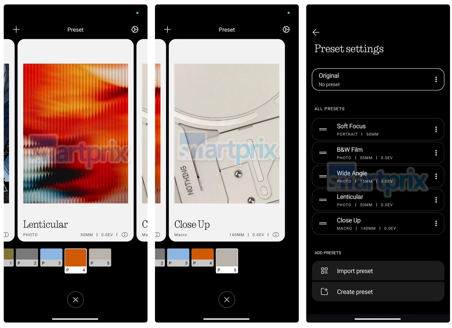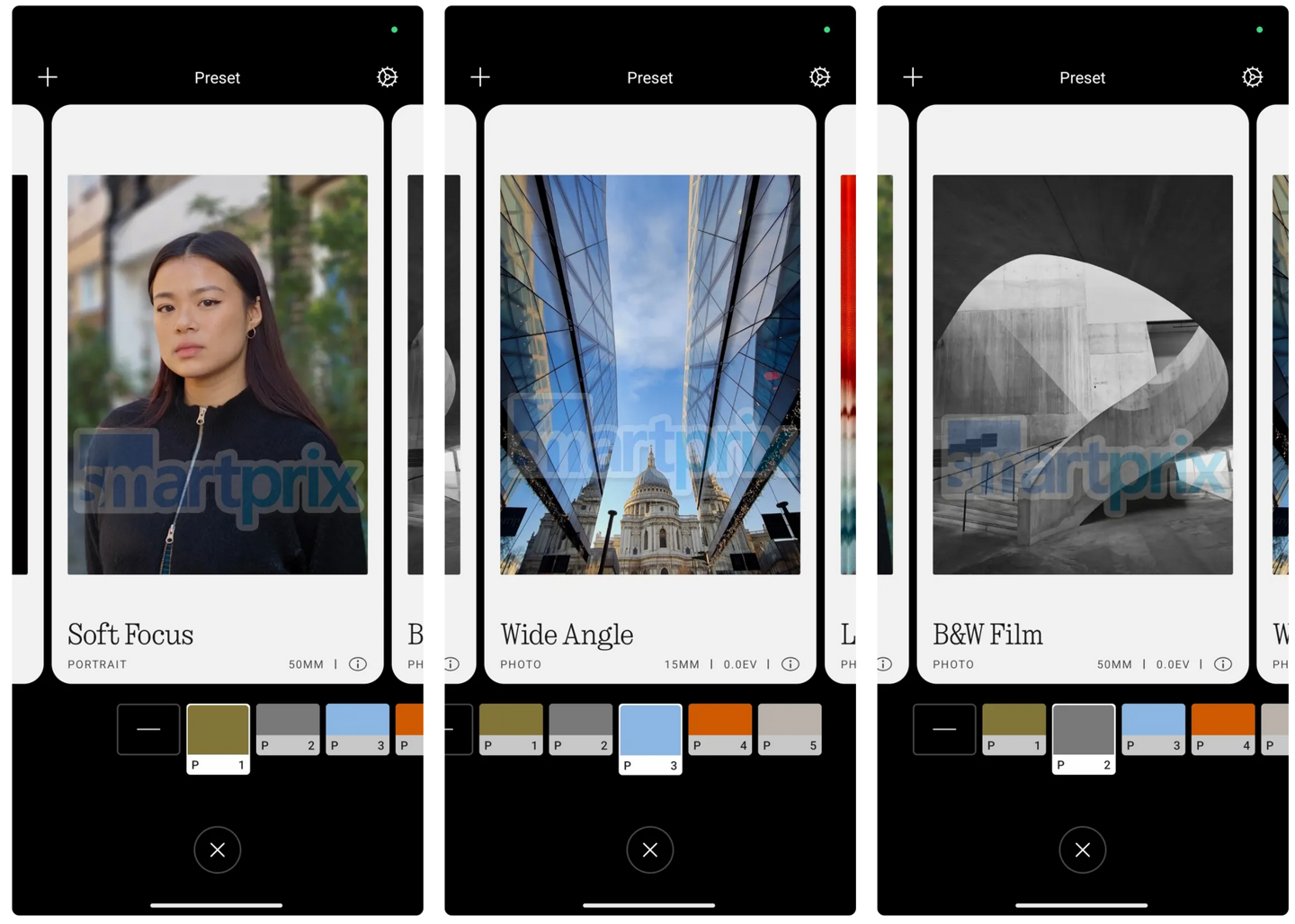 向上滑动取景器可快速切换预设模式,包括“原始”、“柔焦”(50mm 人像)、“黑白胶片”、“广角”、“透镜状”和“特写”(140mm 微距),用户还可以自定义预设顺序和默认模式。IT之家附上相关图片如下: