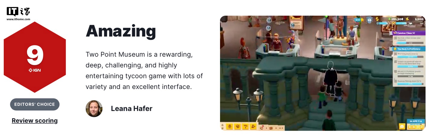 IT之家 2 月 28 日消息,由 Two Point Studios 打造、世嘉发行的模拟经营游戏《双点博物馆(Two Point Museum)》全球媒体评测现已解禁,本作将于 3 月 4 日(北京时间 3 月 5 日)登陆 Xbox Series X|S、PS5、PC 平台,游戏支持简体中文,支持手柄游玩。