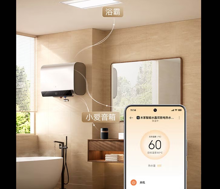 智能化方面,新品支持 AI 智能学习家庭用水习惯、加热时间,通过米家 App 随时远程操控,提前预约用水,并支持米家多设备互联。