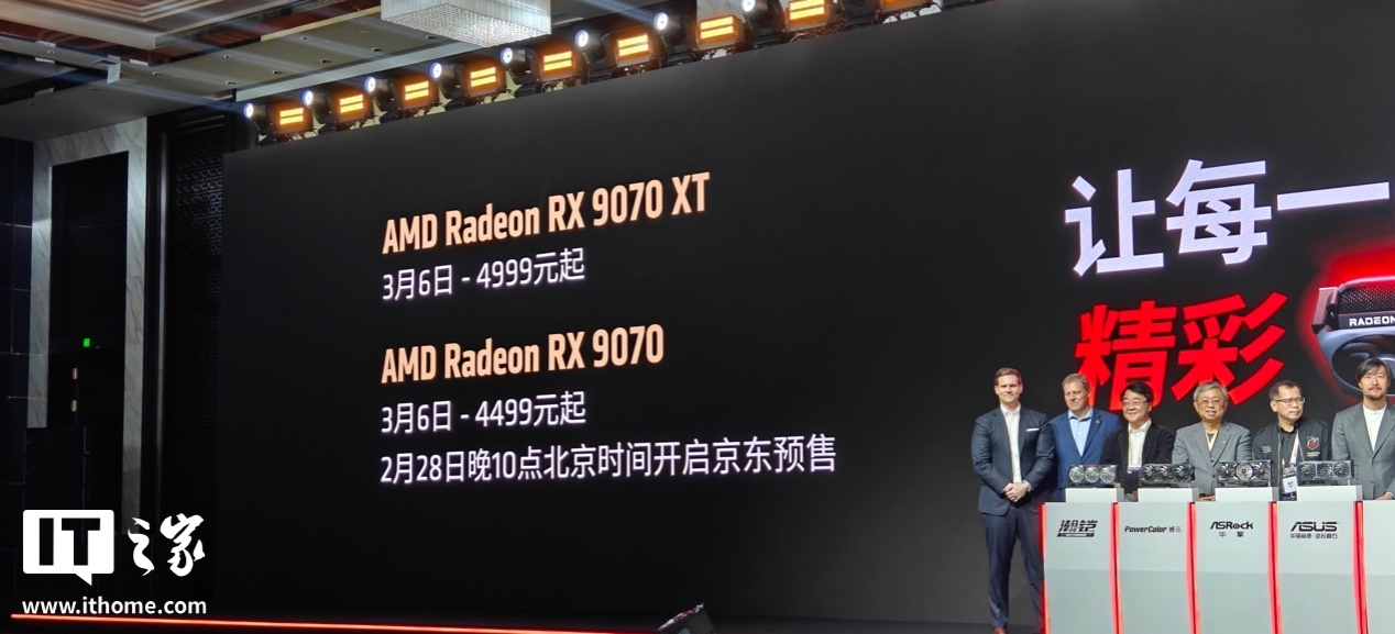 在大家最关心的价格方面,AMD Radeon RX 9070 显卡官方价 4499 元起,AMD Radeon RX 9070 XT 显卡官方价 4999 元起,非常有诚意。两张显卡今晚 10 点将在京东开启预售,3 月 6 日首销。