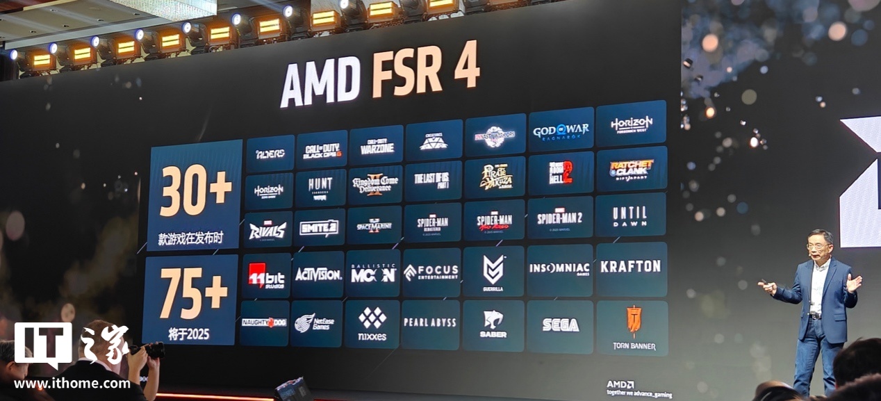 AMD 表示,目前 FSR 4 技术首发支持的游戏数量达到了 30 多款,而在 2025 年支持 FSR 4 技术的游戏总数将超过 75 款。