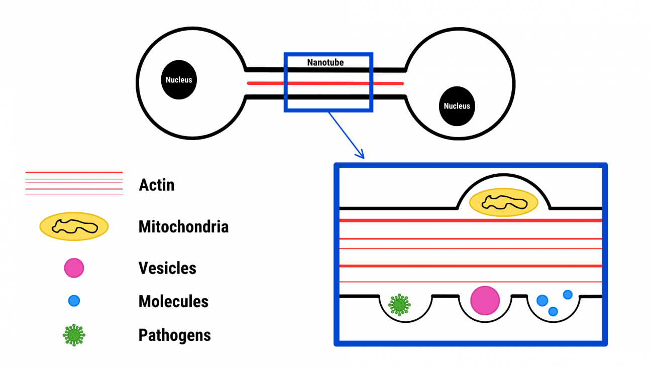 在癌症领域,TNT 被发现可运输促癌分子,并通过线粒体转移增强癌细胞分裂能力。最新研究表明,阻断 TNT 或可抑制肿瘤细胞的增殖扩散。