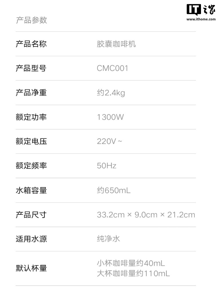 IT之家附产品参数信息如下: