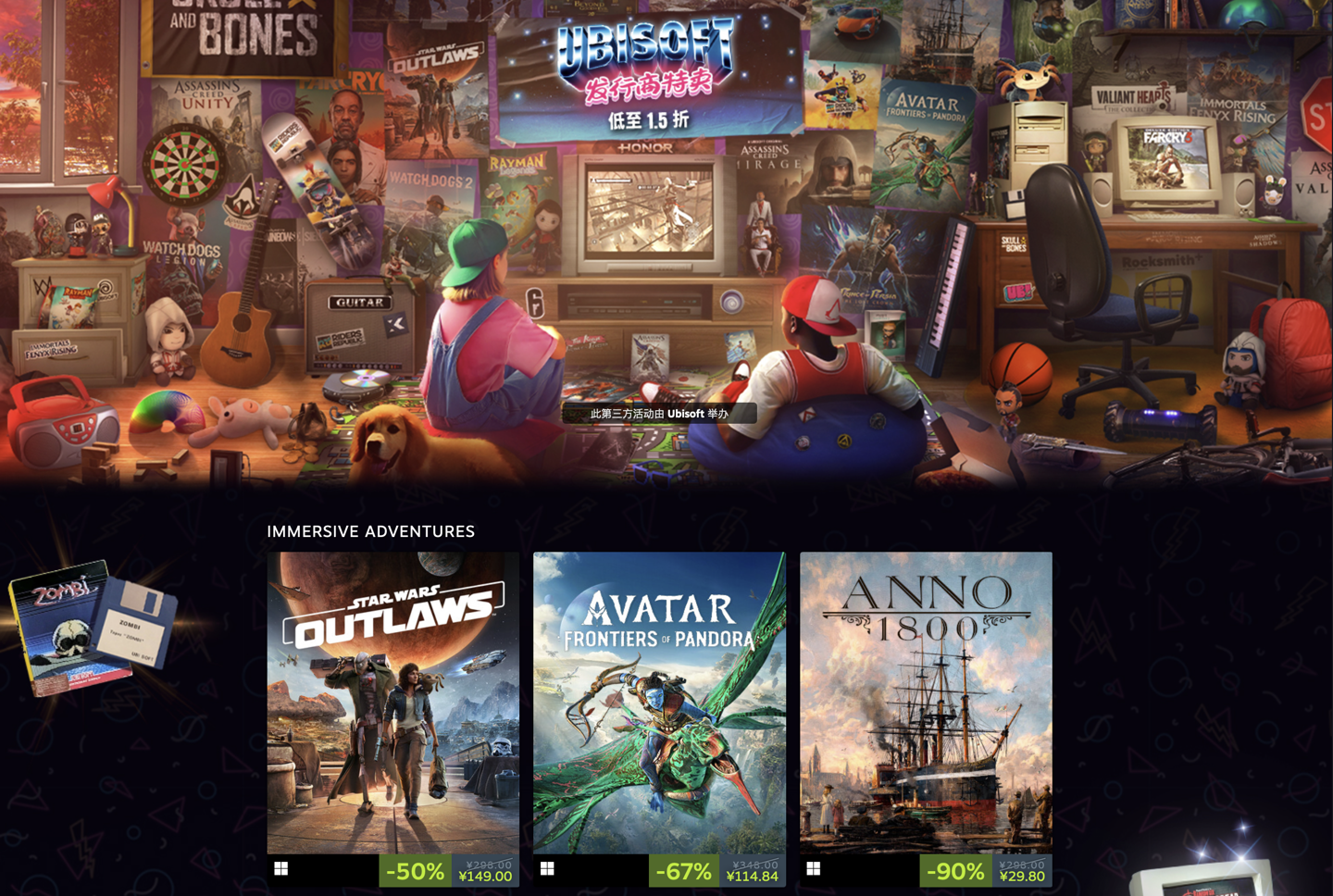 IT之家 3 月 3 日消息,育碧现已在 Steam 平台开启发行商特卖,《纪元 1800》《阿凡达:潘多拉边境》《星球大战:亡命之徒》等游戏迎来史低折扣,游戏促销将于 3 月 14 日结束。