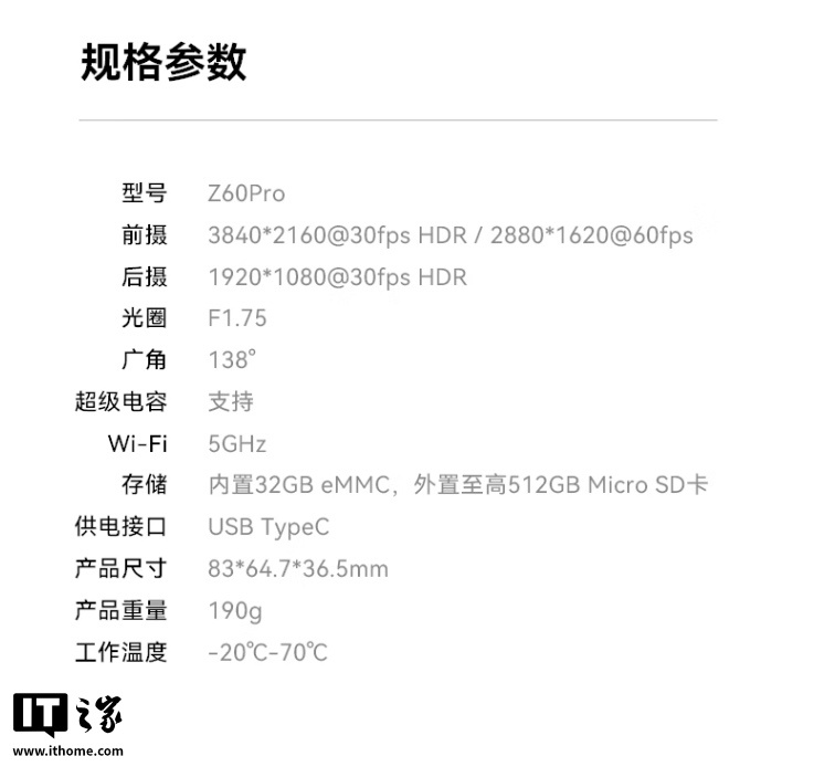 IT之家附行车记录仪规格如下: