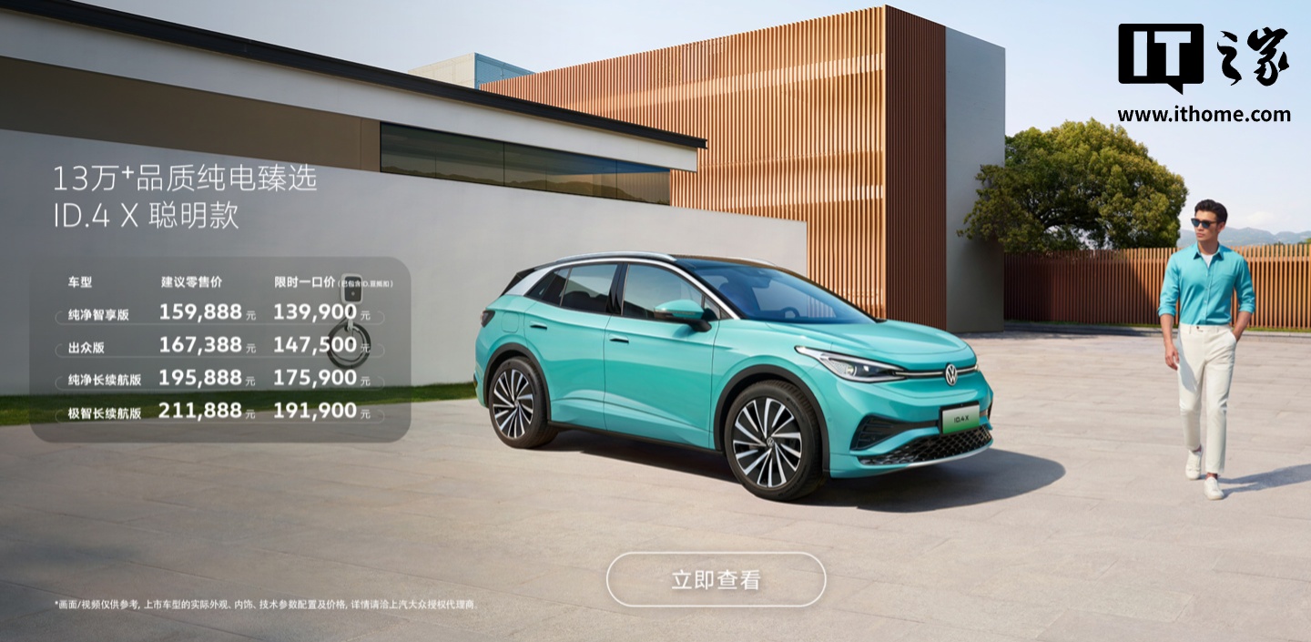 IT之家 3 月 3 日消息,上汽大众 ID.4 X 聪明款出众版正式上市,指导价格为 16.7388 万元,限时一口价 14.75 万元。