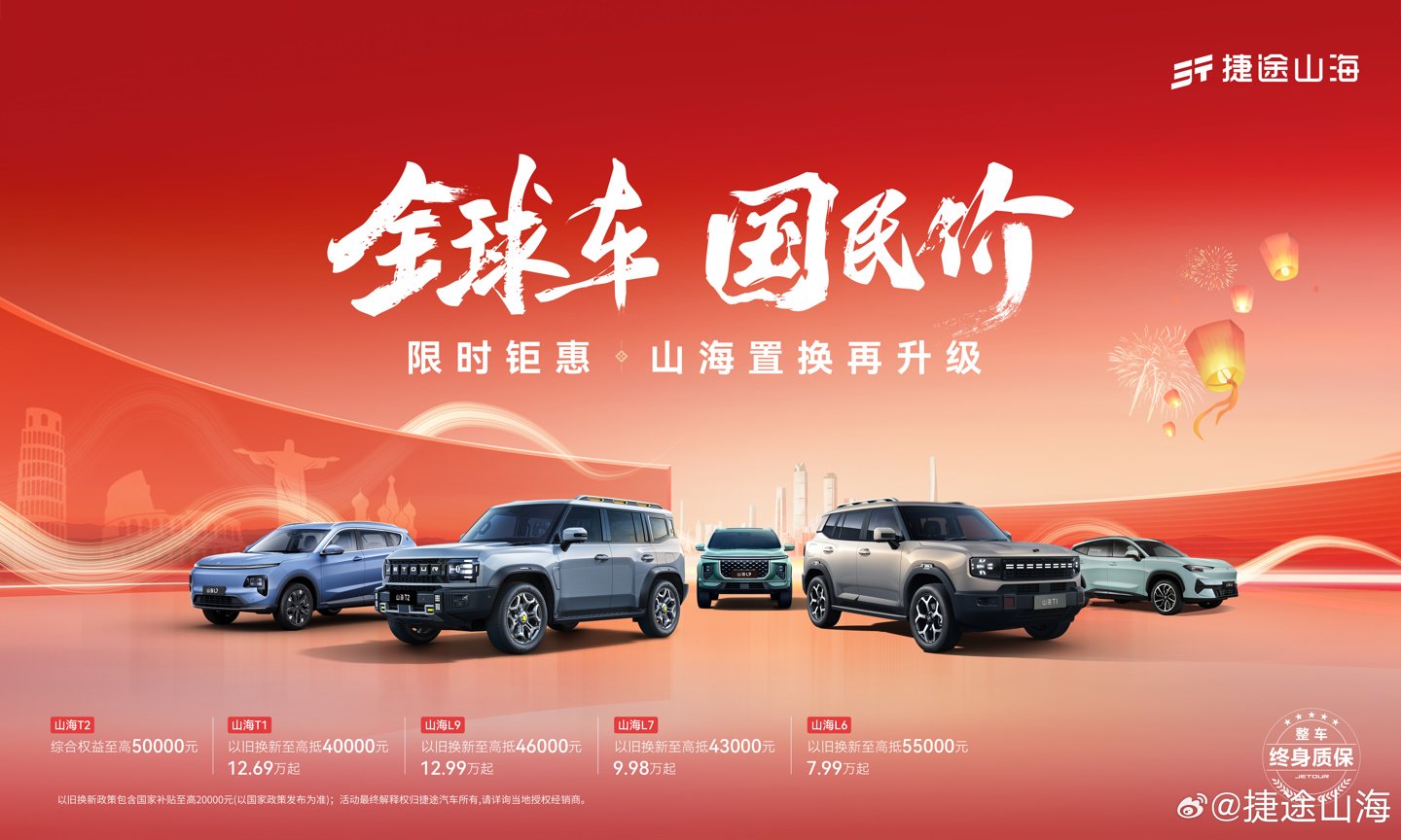 IT之家注意到,捷途品牌昨日针对捷途山海 L7 系列推出新购车优惠政策,提供 2.3 万元置换补贴和价值 1 万元终身质保,全系以旧换新价为 9.98 万元起。