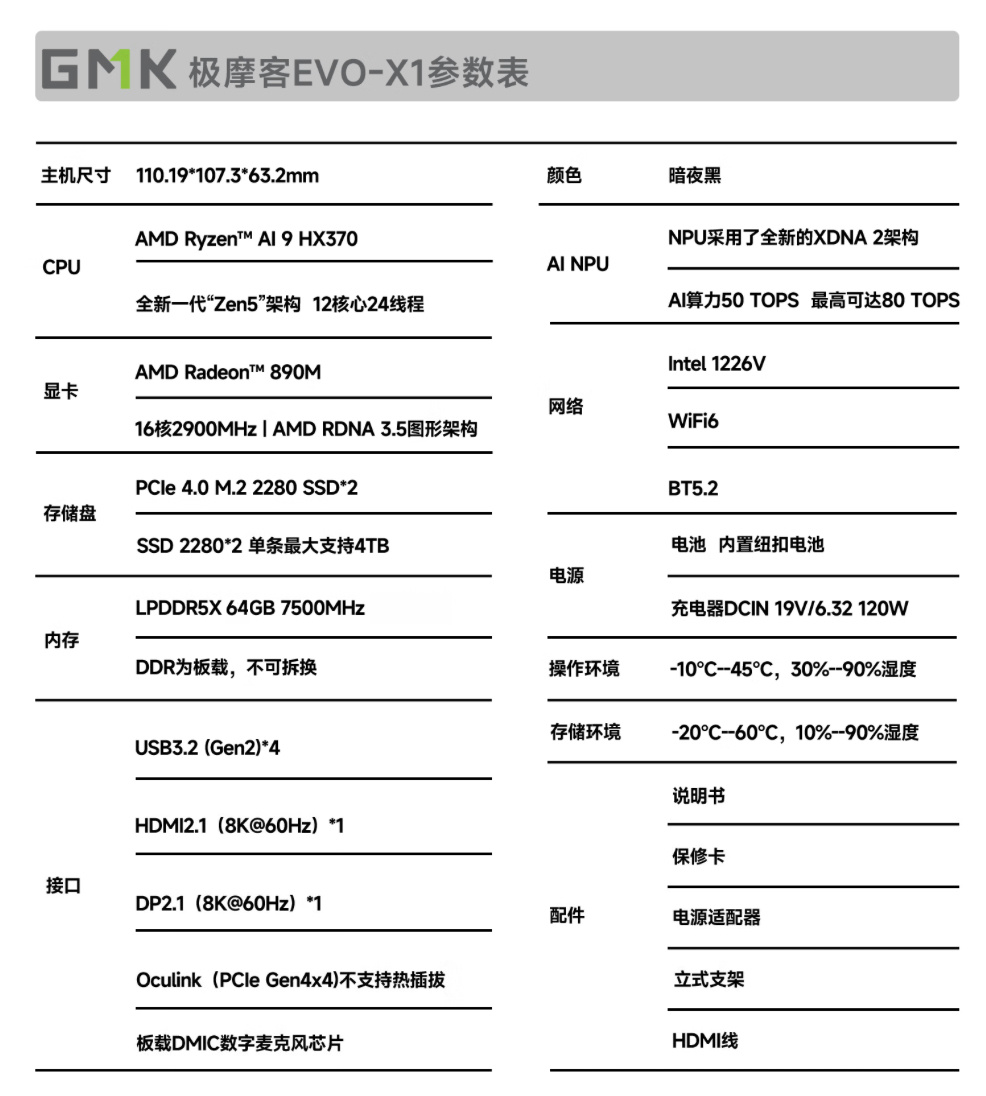 性能方面,IT之家获悉该机搭载 12 核心 24 线程 AMD 锐龙 AI 9 HX 370 处理器,使用 64GB LPDDR5x 7500MHz RAM,搭载 1TB PCIe SSD,集成 Radeon 890M 核显,性能释放 70W。
