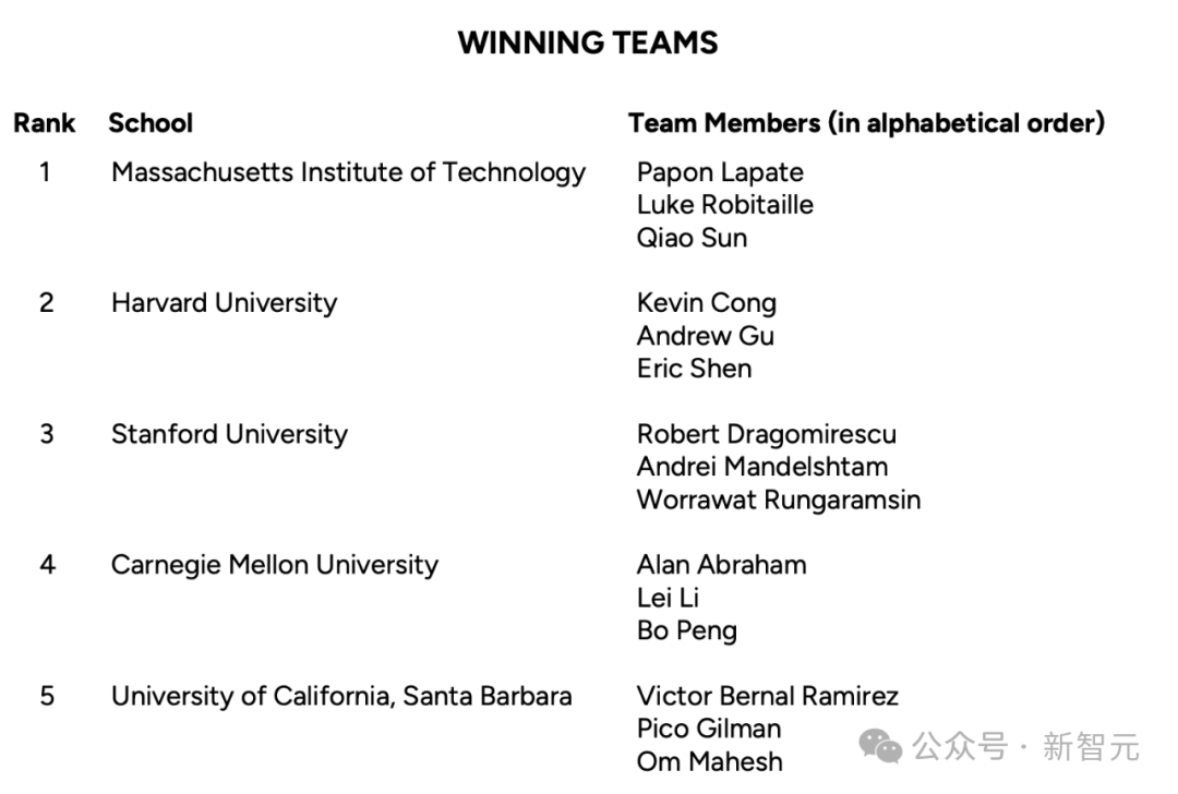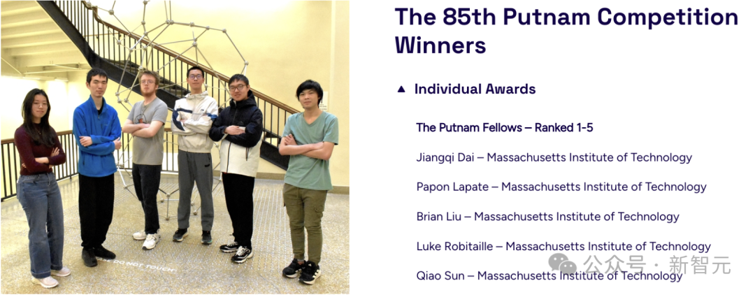 本文来自微信公众号:新智元(ID:AI_era),原标题《普特南数赛公布,MIT 创 5 连冠神话!3 位 00 后华人称霸 TOP 5》