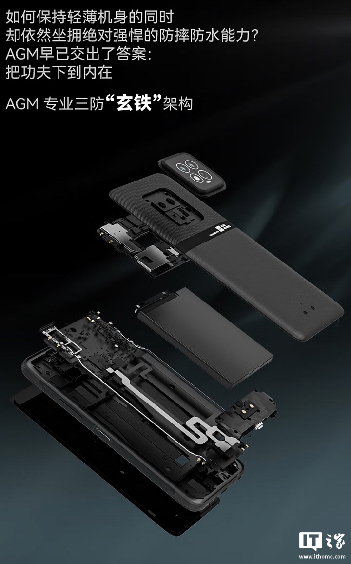 据介绍,该机采用“玄铁”架构,边角采用外层吸能结构,号称防摔高度大等于 1.5m,同时拥有 IP68、IP69K 特性,号称支持“接口裸露防水”,还通过了 MIL-STD-810H 军规测试,支持一次免费进水保修和碎屏保修。