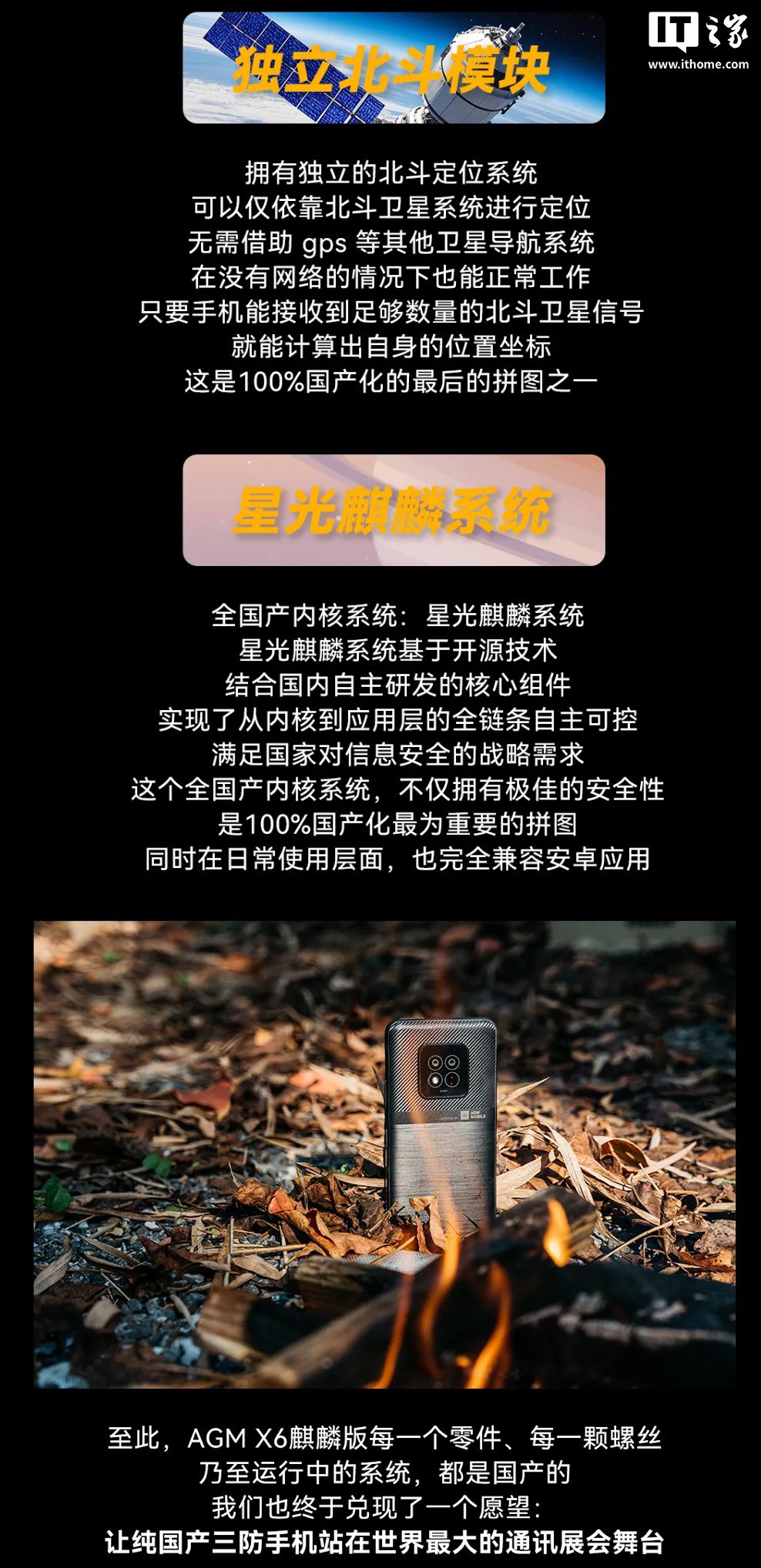 IT之家 3 月 4 日消息,据 AGM 手机官方公众号,AGM 现已为其 AGM X6 三防手机新增一款“麒麟版”,该机搭载独立北斗模块和星光麒麟系统,其他规格与标准版一致,使用紫光展锐 T750 处理器,不过未公布具体价格信息。
