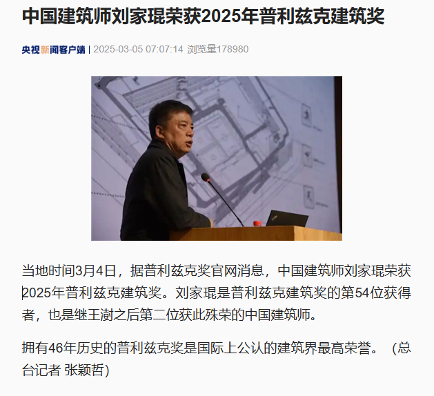 IT之家 3 月 5 日消息,当地时间 3 月 4 日,普利兹克奖官网正式宣布,2025 年度普利兹克建筑奖授予中国成都建筑师 —— 刘家琨。