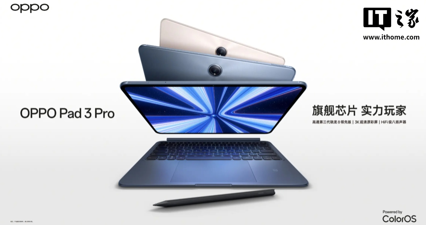 作为参考,OPPO Pad3 Pro 平板于去年 10 月发布,接入 AI 能力、搭载骁龙 8 Gen3 领先版处理器,定价 3299 元起。