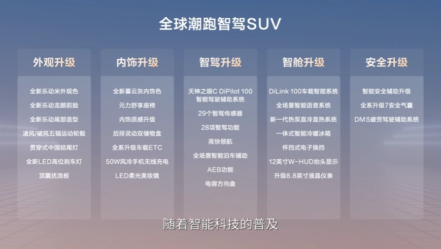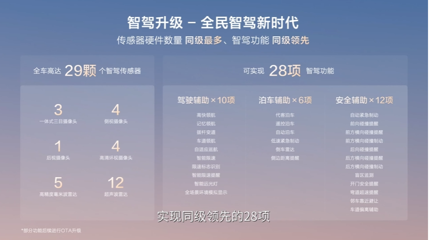 配备 DMS 驾驶员监测系统、CPD 儿童遗留监测系统、标配 7 安全气囊(含前排远端气囊)