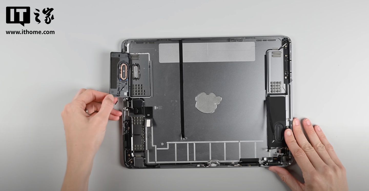 苹果官方从未介绍 13 英寸 M2 iPad Air 中的扬声器“2 倍低音效果”具体技术细节,IT之家随附 iFixit 拆解 M2 机型扬声器图示如下,由于新款 M3 iPad Air 尚未发售,因此目前暂不知悉 M3 iPad Air 是否有进行相应硬件组件改动,需等机型上市后进一步对比。
