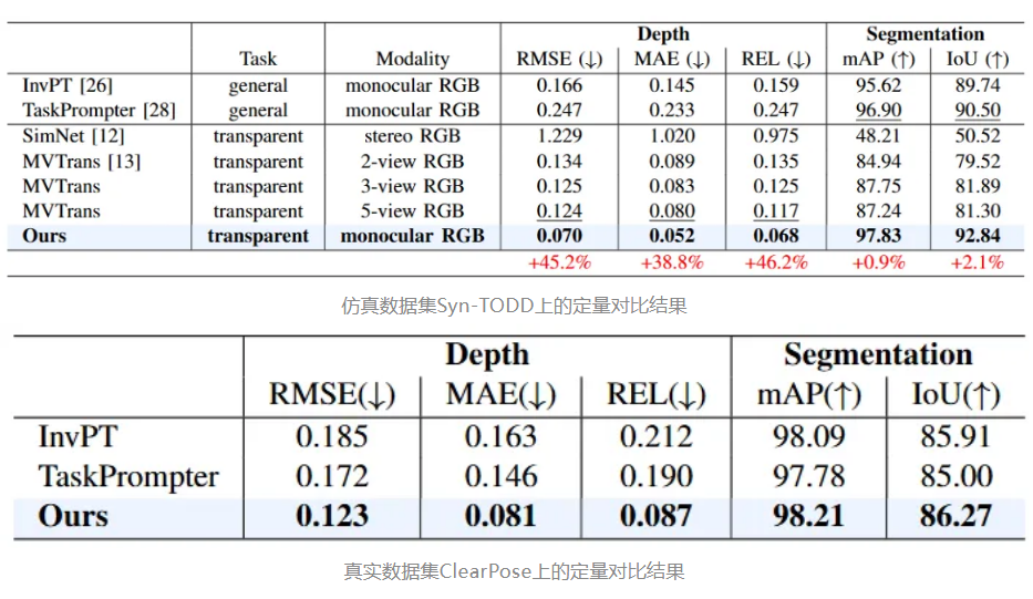 作为机器人执行各项任务中绕不开的操作对象,水杯、试管、窗户等透明物体在人类生活中无处不在。然而,透明物体复杂的折射和反射特性给机器人感知造成了很大困难。在大多数 RGB 图像中的透明物体往往缺乏清晰的纹理,而容易与背景混为一体。此外,商用深度相机也难以准确捕捉这些物体的深度信息,导致深度图缺失或噪声过多,从而限制了机器人在多个领域的广泛应用。