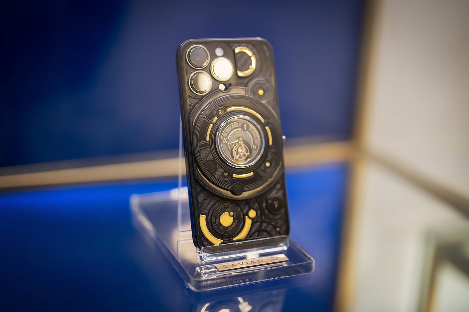 Caviar 在活动期间,首次展示了多款奢华定制 iPhone。其中 Tourbillon Carbon Gold iPhone 售价 14630 美元(IT之家备注:当前约 10.6 万元人民币),融合了苹果的智能手机技术与机械陀飞轮。Caviar 还展示了一款 Ultra Gold iPhone 15 Pro Max,采用纯金打造,尽显奢华。