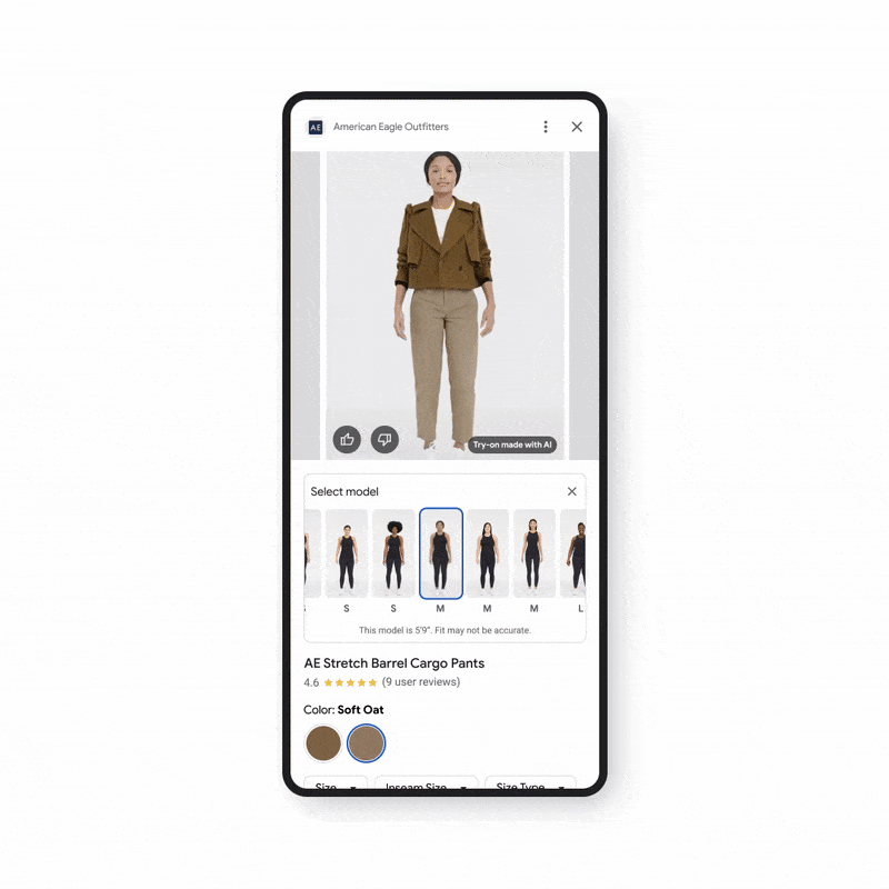 谷歌的虚拟试穿工具于 2023 年夏季首次推出,可以帮助用户通过虚拟模特看到不同款式上衣和连衣裙在自己身材上的效果。现在,谷歌进一步扩展了该工具的功能,新增了裤子和裙子的虚拟试穿选项,使用户能够一次性看到完整的服装搭配效果。用户可以通过谷歌购物标签在移动端和桌面端使用该工具,所有带有“试穿”标识的服装均可使用。谷歌还更新了其机器学习模型,生成“完整造型”,让用户能够从头到脚查看虚拟模特的整体效果。支持裤子和裙子的增强型虚拟试穿功能目前已开始逐步推出。