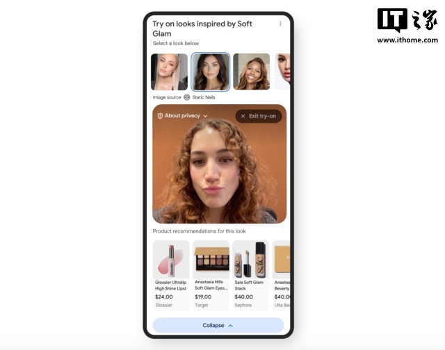 此外IT之家注意到,谷歌的 AR 美妆功能也将在本周晚些时候在美国推出。借助 Gemini 技术,用户可以虚拟试用并购买由名人、网红和美妆潮流启发的多种美妆产品,打造个性化的美妆造型。谷歌表示,未来用户在搜索名人妆容或“春季妆容”等关键词时,将能够一次性试用多种产品,以获得独特的妆容效果。用户只需在移动设备上通过谷歌搜索输入特定妆容,向下滚动至“看看这些妆容在你脸上是什么样子”部分,即可体验虚拟妆容效果。