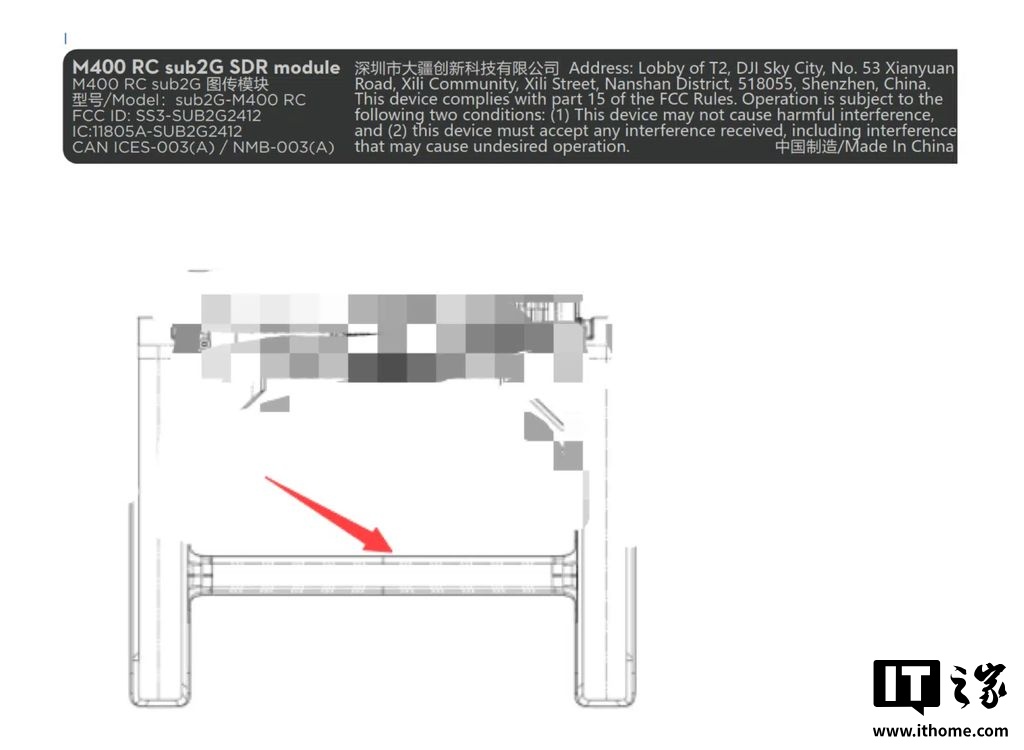 该组件的具体用途仍不明确,不过该媒体认为可能与 Matrice 400 无人机的遥控系统相关,支持 sub-2 GHz 频段,适合长距离传输。