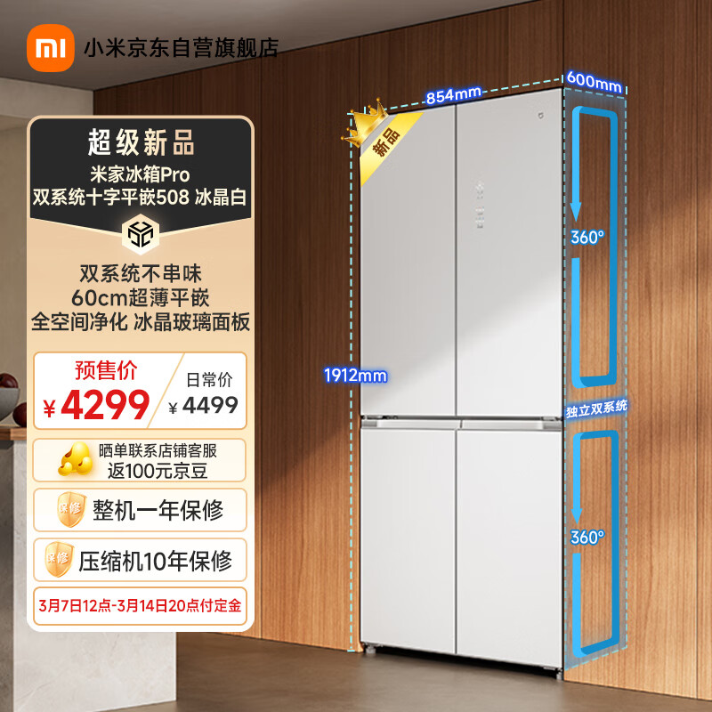 IT之家 3 月 7 日消息,小米米家冰箱分储鲜 Pro 十字 508L 现已在京东平台上架,预售价 4299 元,3 月 14 日 20 点开售。